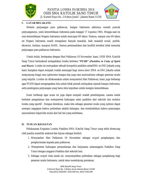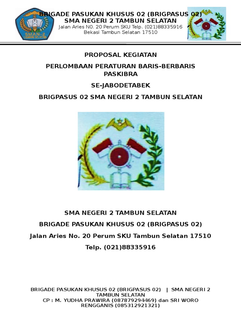 Doc Proposal Sponsorship Adhirianto D Academia Edu from 0.academia-photos.com Itulah yang dapat admin bagikan mengenai contoh proposal pengajuan dana kegiatan lomba paskibra. Madrasah aliyah negeri ( man ) buntet pesantren cirebon. Dalam rangka melestarikan sejarah pakibraka yang ada di indonesia maka, kami dari pengurus purna paskibra sekolah smk setia kawan yang akan mengikuti seleksi tingkat kabupaten bogor tahun 2012. Nama kegiatan pembuatan seragam lomba dan pengibaran paskibra smk telkom jakarta ii. Cukup sampai disini informasi mengenai contoh tema lomba paskibra yang dapat kami sajikan di waktu ini. Begitu juga dengan proposal kegiatan lomba ketangkasan baris berbaris yang masih jauh dari sempurna. Keikutsertaan dalam lomba keterampilan baris berbaris indah (lkbbi) se pulau jawa paskibra mts negeri losarang 2009 paskibra mts negeri losarang satuan siswa pengibar bendera (satsisbara) jl. Kami mengharapkan dukungan dan partisipasi bapak/ibu.