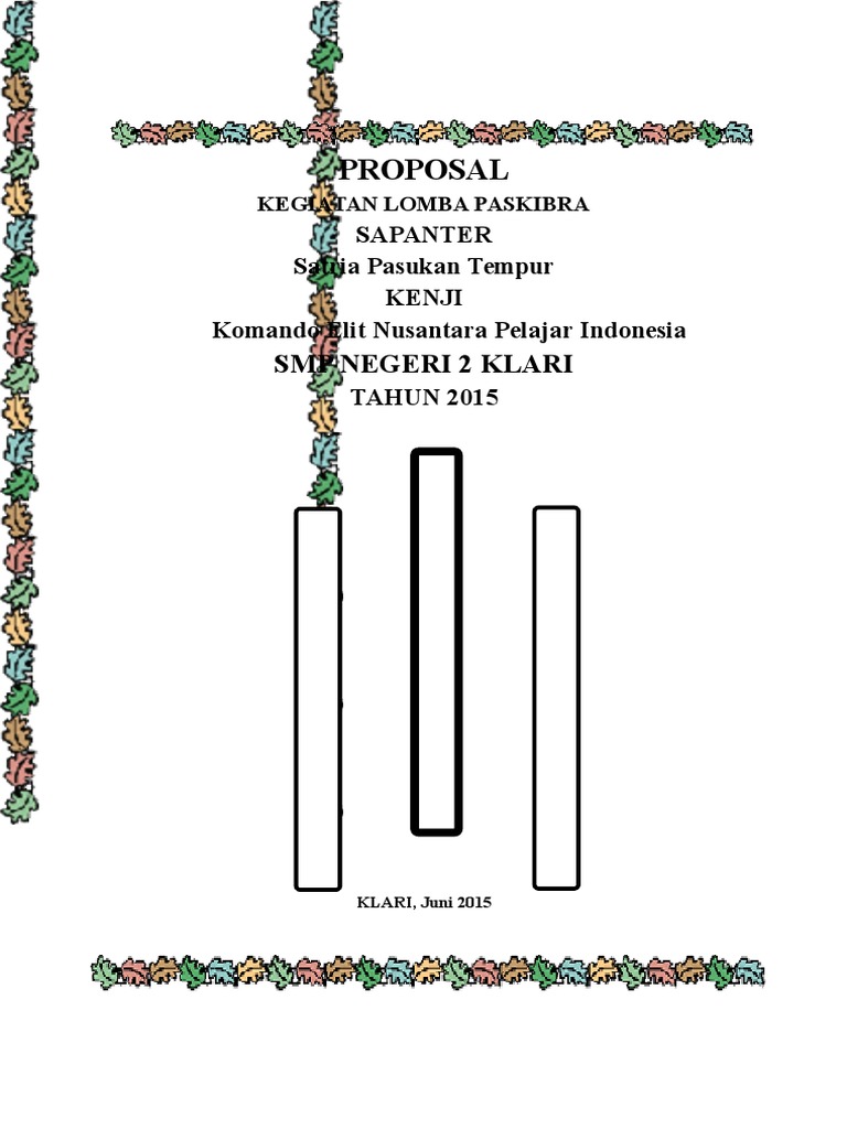 Kami mengharapkan dukungan dan partisipasi bapak/ibu. Selama ini, paskibra selalu memakai pakaian khusus baik untuk … Hasil penelusuran untuk contoh proposal pengajuan dana lomba paskibra Madrasah aliyah negeri ( man ) buntet pesantren cirebon. Keikutsertaan dalam lomba keterampilan baris berbaris indah (lkbbi) se pulau jawa paskibra mts negeri losarang 2009 paskibra mts negeri losarang satuan siswa pengibar bendera (satsisbara) jl. Panitia pelaksana lomba adalah satua paskibra sma negeri 1 cigombong korps paskibra satria padjadjaran dan osis sma negeri 1 cigombong. Contoh proposal untuk pengajuan dana lomba bab 1. Itulah yang dapat admin bagikan mengenai contoh proposal pengajuan dana kegiatan lomba paskibra. Proposal lomba ketangkasan baris berbaris atau lkbb pramuka penegak / penggalang __ berikut adalah contoh proposal untuk lomba lkbb baik untuk pramuka penggalang atau juga untuk penegak. Paskibra ( pasukan pengibar bendera ) smk jayabeka 02 karawang. Mengetahui, ketua panitia ketua osis. Paskibra merupakan organisasi tentang baris berbaris yang ada di kampus sma negeri 1 cisarua,. Proposal pengadaan seragam paskibra smk telkom jakarta i.