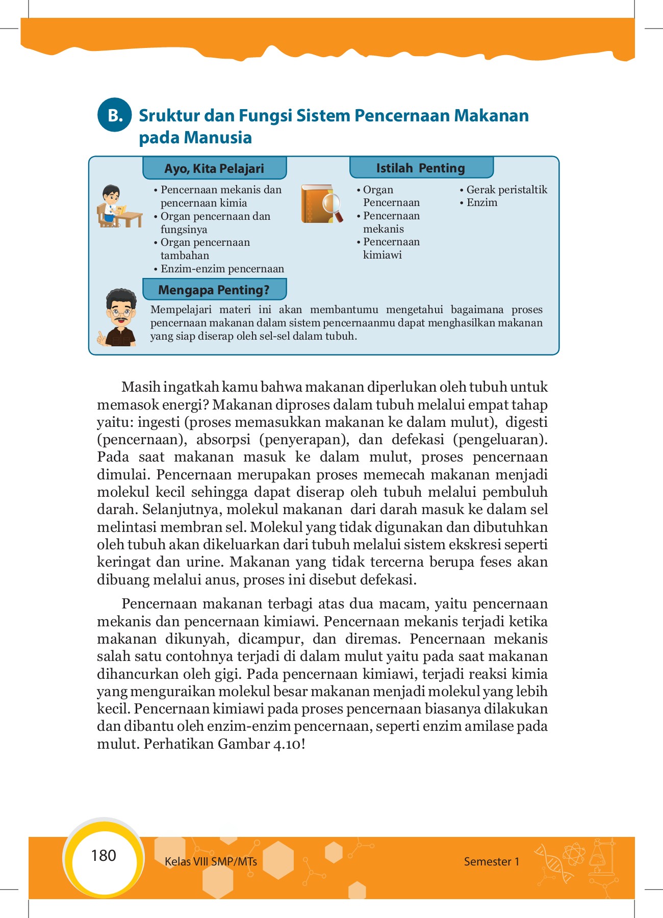 Estimasi waktu aktivitas pembelajaran : Pencernaan adalah pemecahan makanan secara mekanik dan kimiawi menjadi bentuk yang lebih sederhana sehingga dapat diserap oleh sel tubuh. Proses pencernaan manusia dimulai dari pencernaan mekanik dan dilanjutkan pencernaan kimiawi. Pencernaan kimiawi adalah proses penguraian makanan menjadi molekul yang lebih kecil lagi menggunakan bahan kimia yang terdapat secara alami di . Berdasarkan hasil pengamatan yang kalian lakukan, jelaskan mengapa ketika kita makan, penting.